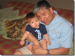 2. He is the most wonderful father I could ever imagine! I seriously don’t know what I would do without him. So many times he has seen me frustrated, unable to think of the right thing to do to make Collin happy, and come along and had the perfect answer/suggestion to the situation. He is also a strong calming influence…I have a tendency to panic - “Oh no, Collin was supposed to eat at 4:00 and it’s now 4:15 and he’s not eating anything, what am I going to do, my baby is starving to death!” And then Son will be the voice of reason saying, “Maybe he’s just not hungry yet. Try again later.”
